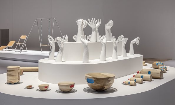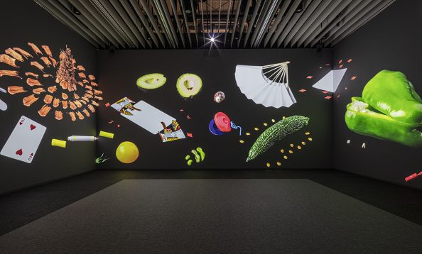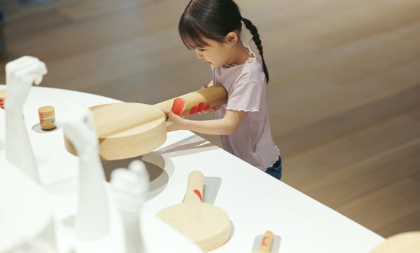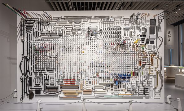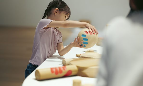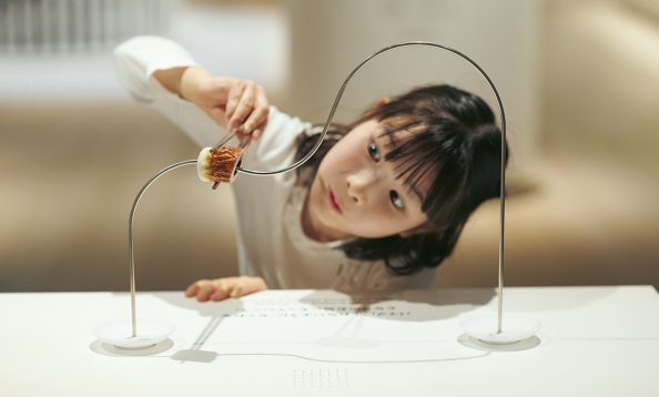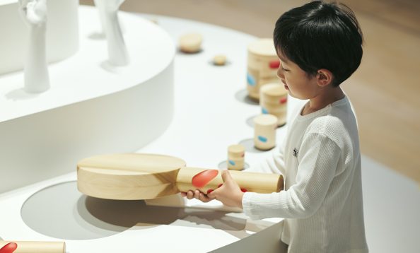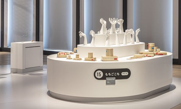 展覧会「デザインあ展neo」に展示構成作家として、展覧会チームの一員として企画づくりから携わりました。担当した作品は「持つ」をテーマにした展示「もちてのむれ」「もちごこち」「もちはこびトライアル」と、4面スクリーン投影映像作品の「解散集合!」です。どの作品も、単純で当たり前なことの中に潜んでいる面白さを体験するために、単純な方法を起点にデザインしています。